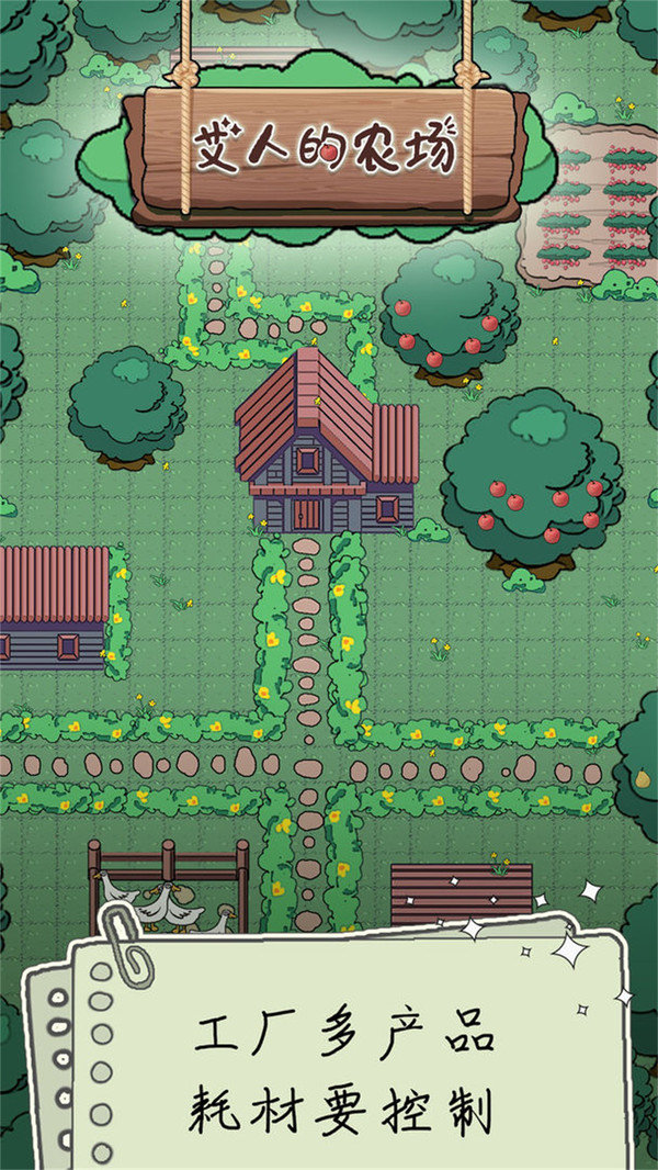 艾人的农场,一款简单的休闲放置类经营游戏,玩家扮演农场主人,通过开地、扩展农田、建造工厂建立完整的农产品生产线,进而获取更多利润并不断扩大农场,最终完成各种有趣成就。