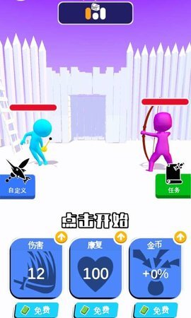 画个武器是一款玩法简单的休闲游戏。游戏界面简洁是一款适合双人一起竞技的休闲闯关小游戏,游戏中玩家可以为自己的橡皮人绘制不同的武器来进行作战,非常的自由,随时可以畅玩。