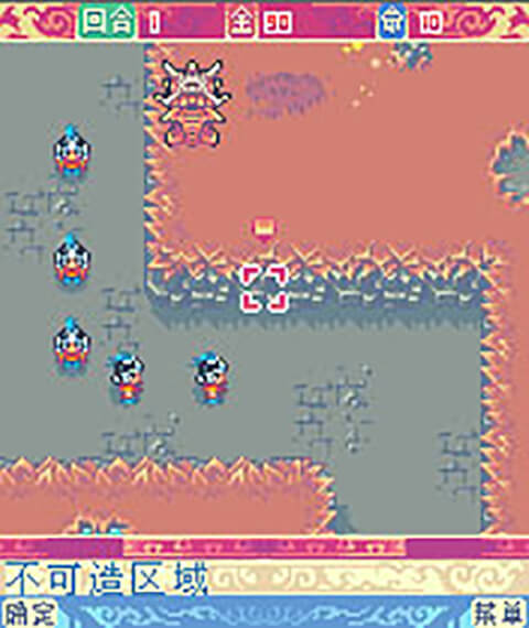 敌兵分批从敌城出发,玩家每消灭一个敌兵获得一些金,用金可以在我方城池中营建各式各样科技建筑,
