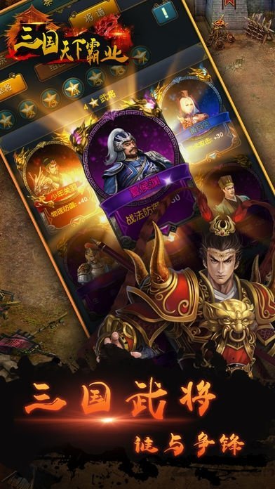 三国天下霸业,建造自己的帝都,在这里培养强大的士兵去战斗,招募各位强力的武将,带领队伍去攻打敌人的城池,掠夺更多的资源,各种战役等你去指挥,主导战场,在这个烽火连天的三国时代完成统一的霸业,执掌三国。