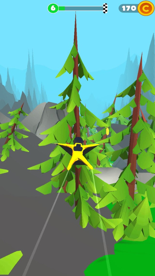 飞翔大师,如同鸟儿一般在天空中自由的翱翔,张开你的双臂调整飞行的方向,灵活穿过丛林与高山,小心避开危险树木和岩石等障碍,自由飞行冒险探索更多的地方,指尖飞行享受无拘无束的冒险旅程,清新迷人的自然风光尽情来享受。