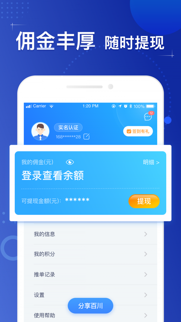 百川推客是一款非常实用的软件利用先自己的人脉,软件内置海量的产品资源,人人都可以参与,喜欢的小伙伴快来本站下载吧。
