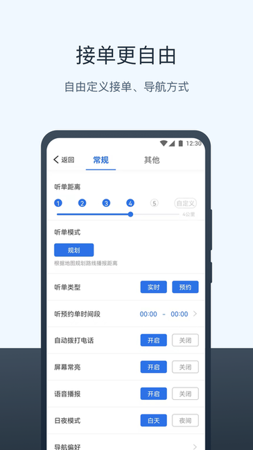 2.软件为用户提供自定义接单模式,让用户可以设置接单需求,软件根据用户需求推送订单。