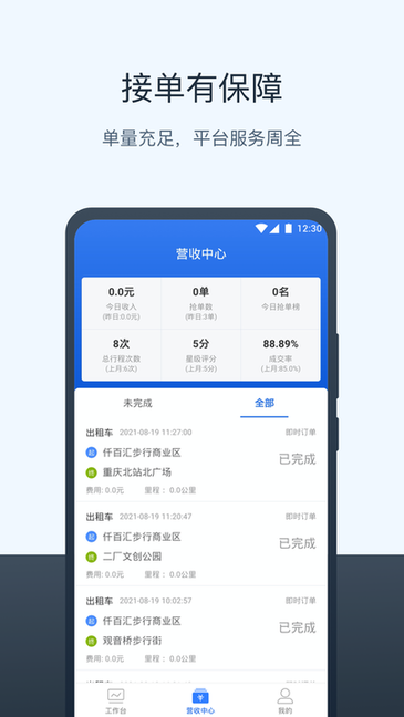 1.软件为用户提供最便利的智能办公工具,用户可以在软件中快速接单,更快速度的前往工作。
