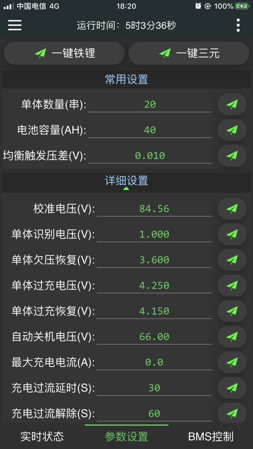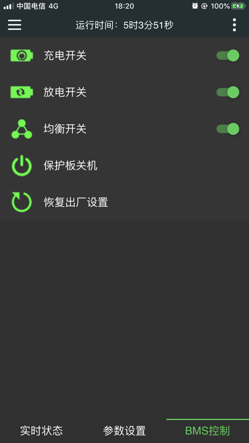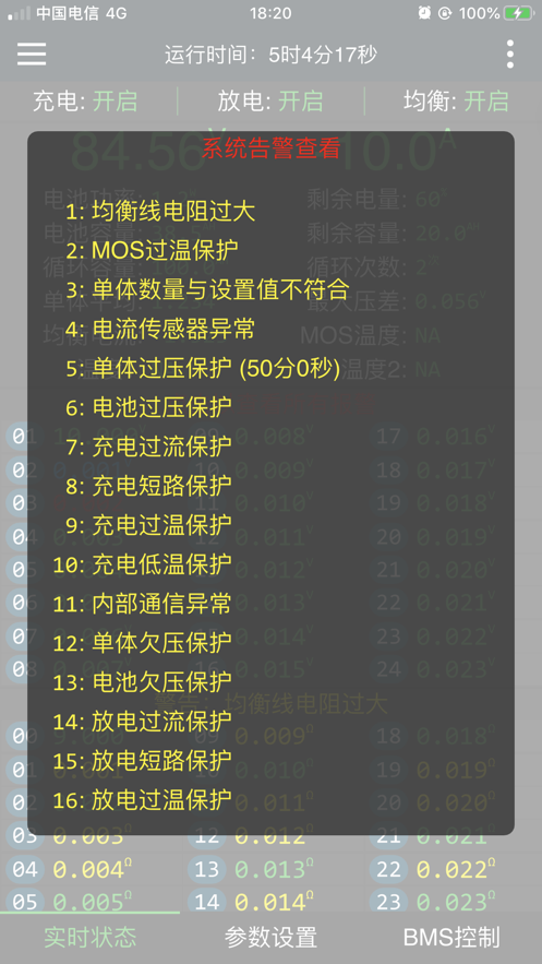 非常不错的电池监控管理软件,可以直接让设备与蓝牙进行联系,轻松的实现各种均衡器和参数信息展现,还可以直接的设置运行的参数信息,可以轻松对电池的设备进行远程度的控制,自由改变电池的状态,使用也会更加方便。