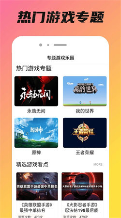 1.热门游戏专题随时去获取,任何时候去畅玩游戏更加有趣。