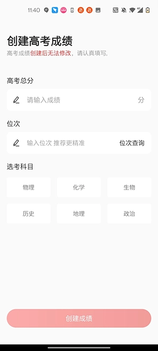 3、输入我们的高考分数及选考科目(这里以山东为例)。