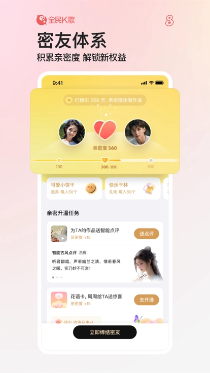 “全民K歌app”是一款专注于在线K歌与社交娱乐的移动端应用,提供海量歌曲库、实时合唱、智能评分及社交互动功能。用户可通过录制、分享作品参与K歌社区,与好友或其他用户PK竞技,适配个人娱乐、聚会场景及专业歌手练习需求。