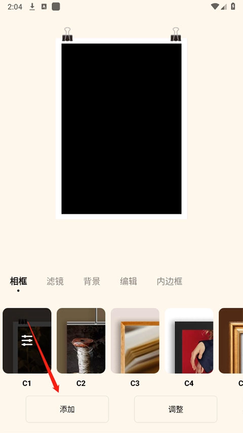 5、这里有着相框、滤镜、背景、编辑、内边框让你选择使用,编辑完成后即可保存了。