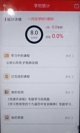 7、点击学时统计可以查看本期学习情况,1月份学满1个学时才合格!!!