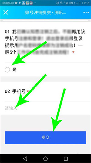 6、点击后,勾选“是”,然后填写个人信息,填写完毕点击提交,提交后5个工作日内即可注销账号。