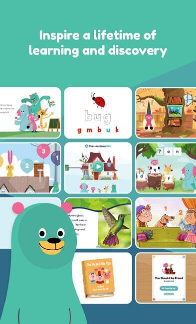 在Khan Academy Kids应用程序里,孩子们能够学习阅读、语言、写作、数学,还能在社交情感发展、解决问题能力以及运动发展方面有所收获。像绘画、讲故事、涂色这类开放式活动与游戏,能够激发孩子们的创造力与自我表达能力。一群萌趣的动物角色会引导孩子们上课,我们的适应性学习路径会为孩子们量身打造学习体验,助力他们掌握各类技能。