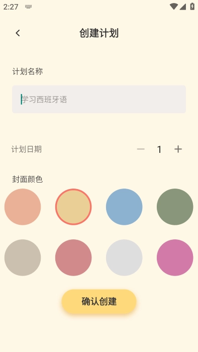 以当前的操作界面为例,输入你希望的文字,并选择封面颜色,进而创建属于你的计划。