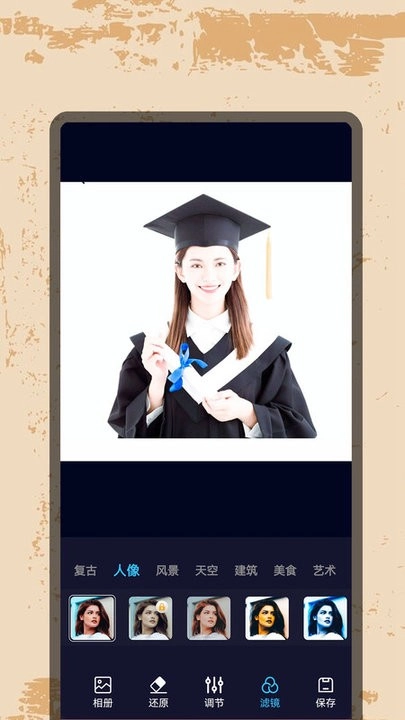 2. 各类复古滤镜所营造出的美图效果各有差异,且能实时便捷获取。