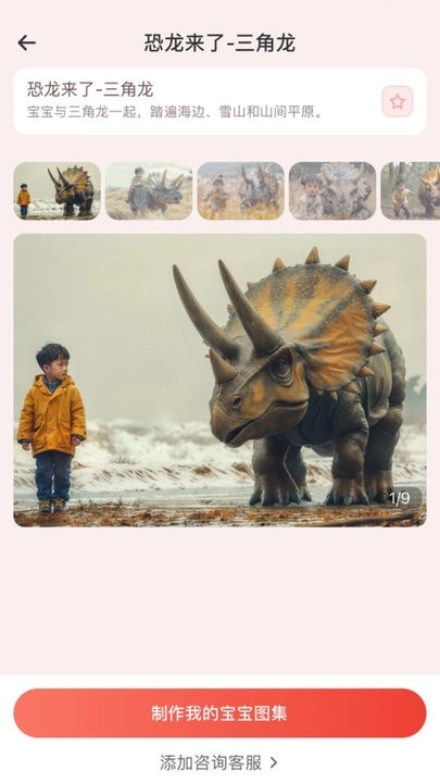 2. 能够把宝宝的好几张恐龙照片整合制作成一本图集,将宝宝成长的各个阶段都记录下来,为孩子留存美好的回忆。