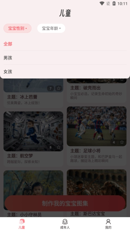 在此处能够对孩子的性别与年龄加以选择,从而更便捷地找到孩子想要的照片。