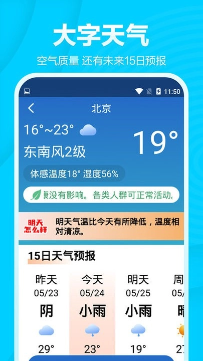更多>准确的天气预报app,向你展示了特别好用的天气预报工具,里面能够为你提供最近十五天内、每个小时的天气状况,让你时时刻刻掌握天气变化;而且里面的数据都是根据各大气象台的信息综合得来的,十分的准确,能够为你的生活带来特别多的便利哦!
