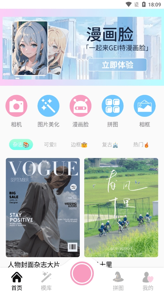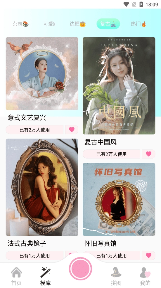 点击模库,这里面有大量风格各异的模板可供使用,挑选一个心仪的模板,就能直接拍出美美的照片啦。