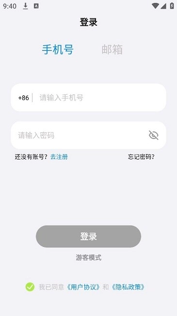 2. 若尚无账号,请先进行注册;若已有账号,既可以直接登录,也能够直接以游客模式进入软件。