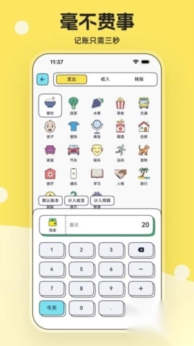 3、三秒入账:点几下就能完成记账,不拖拉。
