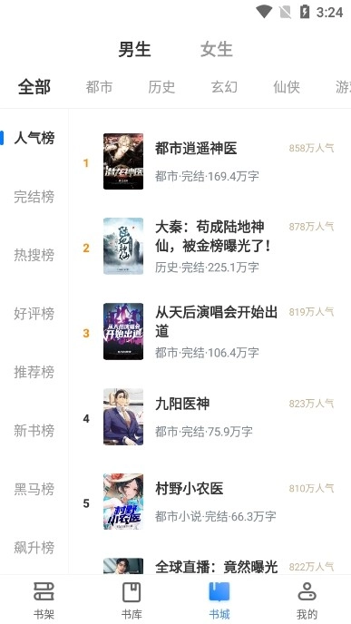 2、打开软件,便能直接看到各类大神佳作的推荐。倘若你不喜欢这些推荐,也可自行点击书库或完本选项。