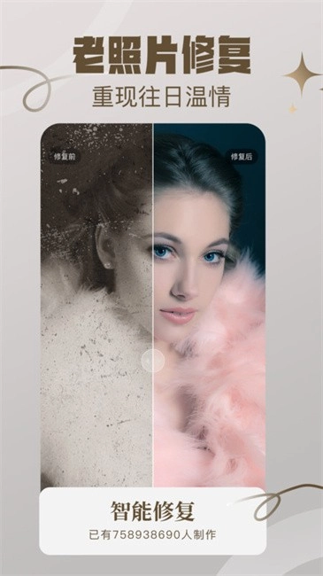 具备老照片修复功能,能够助力用户迅速提升模糊照片的画质。