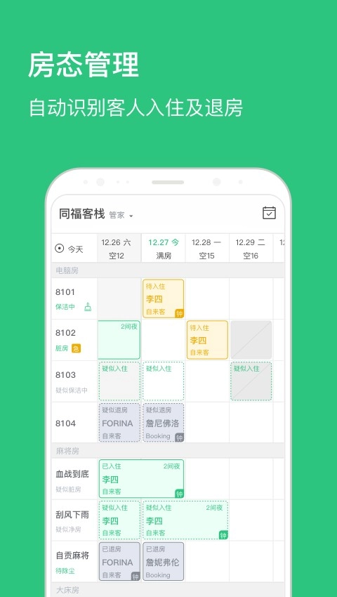 1、房态管理逻辑清晰,尤其擅长处理钟点房、连住房等复杂订单,可视化操作界面显著降低新手上手难度。