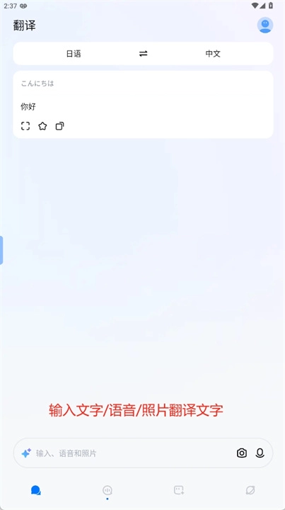 2、输入文字或语音或照片即可开始翻译文字。