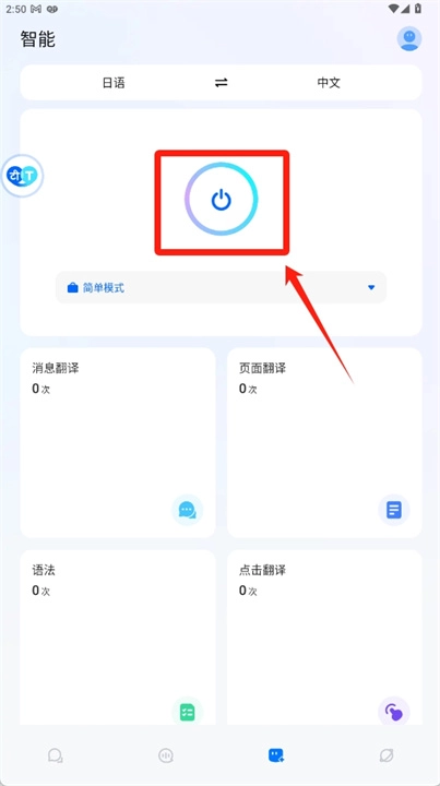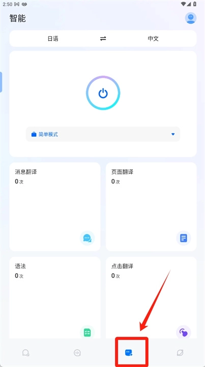 1、点击下方的第三个按钮,打开屏幕翻译页面。