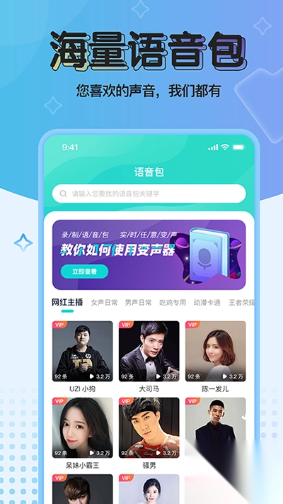不需要花钱的变声器软件这里有超多的资源哦,都是让你们在各个聊天场合中就能直接切换各种声音的平台,真的超级好用,而且这些语音包资源都是免费推送给你们的,百变音色想换就换,多种类型的语音包即可来用吧。