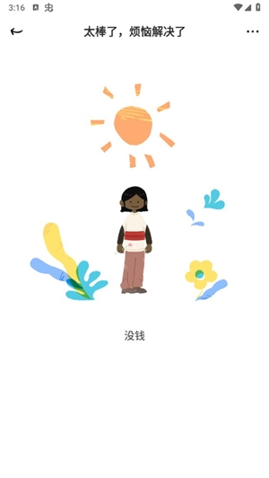 3、当你的烦恼解决了,解忧娃娃就会被戴上黄冠。 在 App 内你也能回顾之前纪录的所有烦恼们,这是一个经过证实能减少焦虑的好方法!