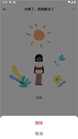 3、左右滑动,选择你已经解决的烦恼,然后点击右上角的三小点;