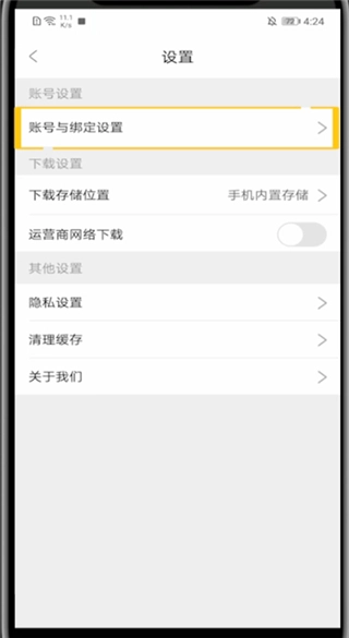 4、找到并点击账号与绑定设置