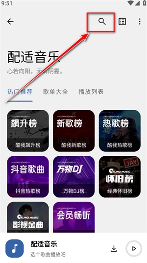 1. 在本站进行适配音乐的安装,安装结束后开启应用,点击右上角的放大镜图标,进入搜索界面。