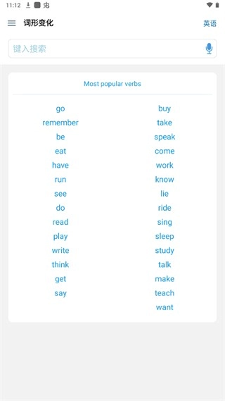 5、进入“词形变化”页面,可以更好的帮助你进行学习