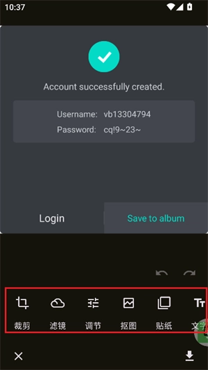 5、接下来进入编辑界面,在此能够执行裁剪、调节、抠图,以及添加滤镜、文字等操作。