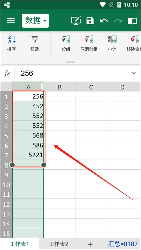 6、完成操作后,即可对选中单元格中的数字进行排序。