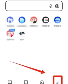 1、打开夸克浏览器,在主页面点击右下方的三条杠图标可以打开菜单。