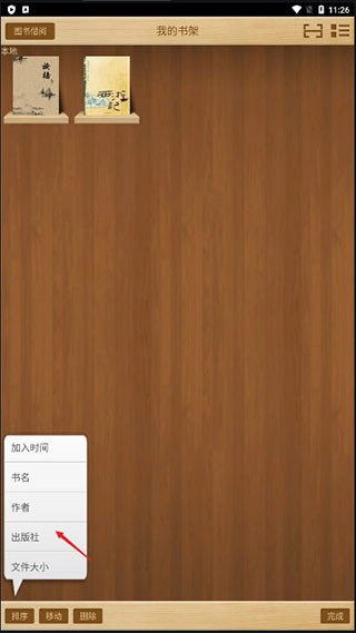 3、返回主界面后,能够依据书名、作者、加入时间来进行排序。