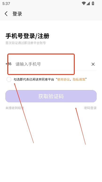 输入手机号,完成验证,即可登录成功