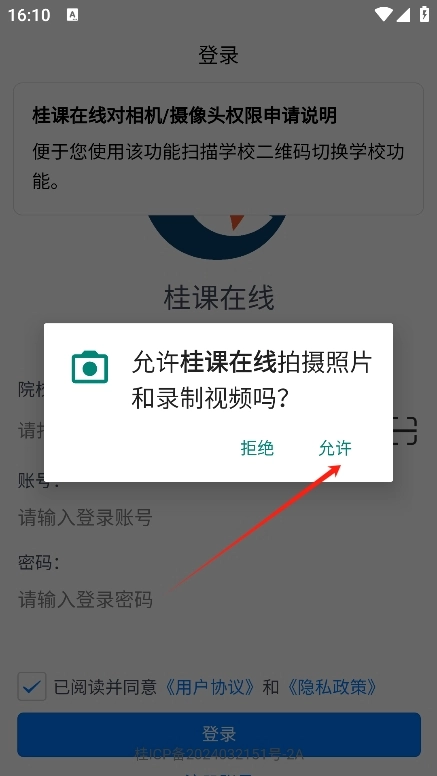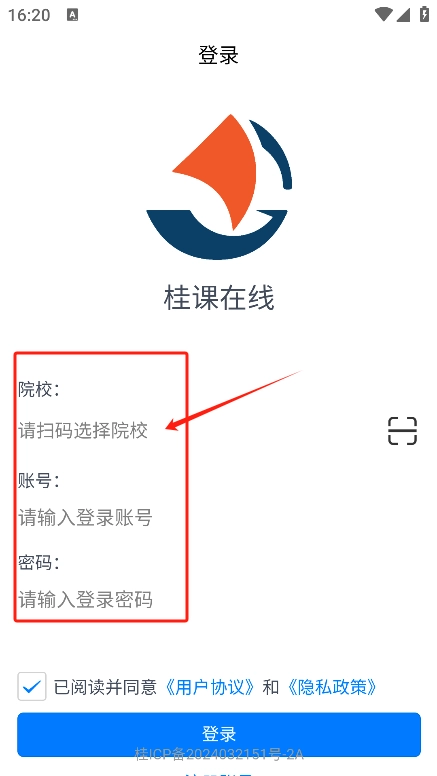 2、进入后这里我们统一桂课在线的用户协议