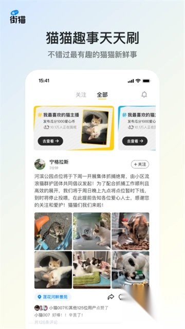 3、于【猫友圈】之中,能够进行精彩的猫猫抓拍内容创作以及猫猫吃播分享,还能对云监督猫屋的安全状况进行报修,参与到猫猫救助行动里,真心实意地夸赞那些正在关爱猫咪的人和事。