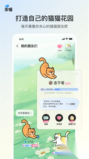 哈啰街猫,既是一款专注流浪猫领养的社交软件,也是一个秉持科学理念的流浪猫关爱社区。在街猫的猫屋直播间里,用户能够远程投喂流浪猫,甚至还能照顾到狗狗、刺猬、松鼠等其他小动物,助力改善流浪动物的生存条件。 这里汇聚着众多爱猫之人,用户在猫友圈既能与大家畅快交流、分享养猫心得,还能搜索到各式各样的猫屋。只需轻点对应的猫屋,就能观看流浪猫吃播,要是乐意,还能赠送自己的猫粮给流浪猫。如今,哈啰街猫已成功蜕变,成为深受广大爱猫小伙伴喜爱的云养猫平台。在这里,大家不仅可以在线养猫、尽情吸猫,还能与猫友实时互动,交流养猫经验,共享爱猫生活的乐趣!