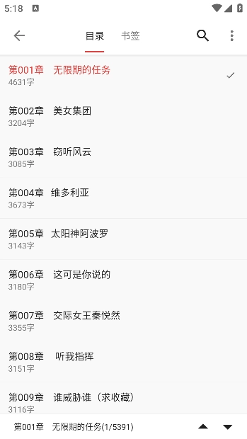 2、选择感兴趣的小说后软件将会自动进行呈现