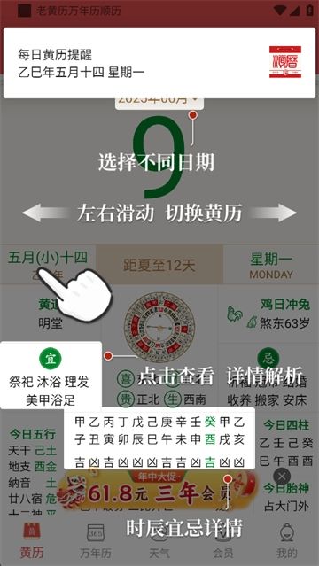 老黄历万年历顺历,由广东很久文化传播有限公司精心打造,是一款集日历与黄历查询功能于一身的实用日历工具。它不仅提供每日宜忌、节气运势、吉时查询等经典老黄历功能,还支持日程提醒、节日倒数等贴心实用工具。该工具界面设计简洁高效,操作十分简单,各位有需要的朋友们,欢迎前来体验!