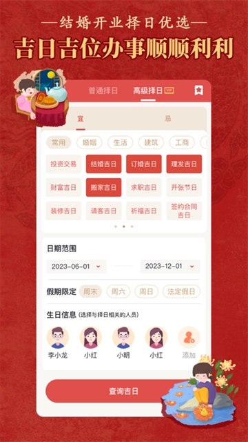 2. 供应涵盖200年的万年历与黄历,还具备法定假日及节日的提醒功能。