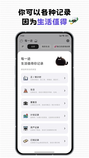 1、每一迹是一款功能全面的实用生活管理软件,能够满足用户记录重要日子以及管理资产的需求。