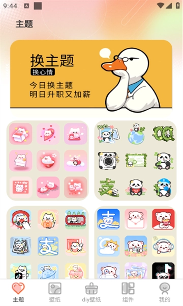 2、精致的主题包,涵盖壁纸、图标等多方面元素,只需一键申请,即可瞬间切换手机风格,让你尽情领略一场视觉盛宴。