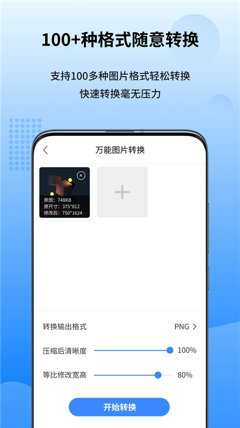 2、手机可安装万能图片转换器免费版,它支持各种图像格式转换,运算快速,有上百种不同格式供您自由挑选。