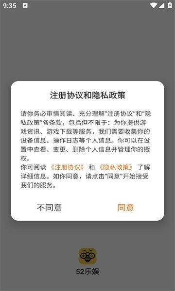 1、安装后打开软件,提示同意与否,点击同意进入注册界面;